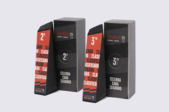 Los trofeos entregados a los ganadores —lejos del convencional metal o cristal— han sido fabricados por la empresa española Sustainable Awards a partir de neumáticos de bicicleta reciclados. Una apuesta que va más allá de la estética: se trata de un gesto cargado de simbolismo, ligado a la economía circular En palabras de la propia organización: “The La Vuelta 25 trophies are a symbolof sustainability and innovation, created to celebrate the race’s 90thanniversary. Madefrom 100% recycled SBR rubber from bicycle tires, these awards transform wasteinto a valuable object, demonstrating the competition's commitment to thecircular economy. The trophy design reflects the history and energy ofcycling.”
